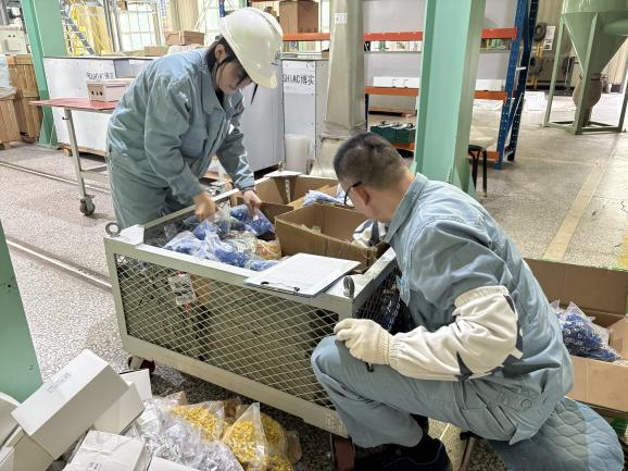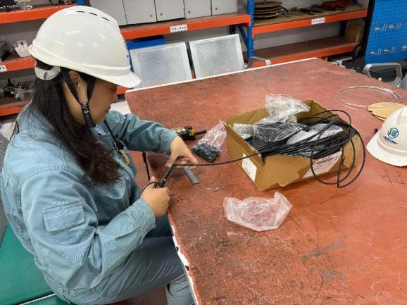 任務間隙,他們迅速轉換角色,俯身專注地協助綜合組完成地線剪裁、壓接等輔材制作,有效縮短生產輔材制作時間,提升生產效率;同時,密切配合6S管理人員將新進物資按型號、用途細致分類擺放,縮短了后續物資取用時間,讓生產流程更順暢。此外,吊叉組成員主動分擔熱塑管分類、剪裁等任務——他們深知,這些看似簡單的工作,正是保障后續生產有序開展的關鍵。這些點滴行動,不僅推動了生產流程的優化升級,更讓團隊協作精神具象化:集體力量在分工與互補中迸發,既有銳意進取的效率,亦含溫暖互助的溫度。